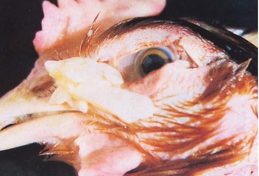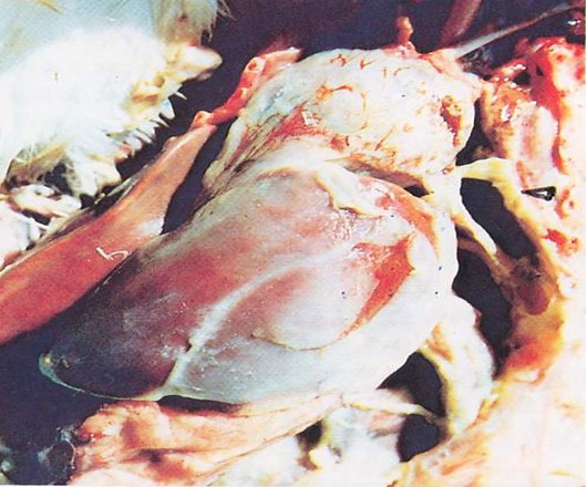 臨床特點(diǎn):23-33天開(kāi)始,張口呼吸(蛤蟆叫聲); 夏季 40天后狂叫而死亡。 剖檢特點(diǎn):單側(cè)肺臟纖維素化----氣囊炎---心包炎—心包積水----肝周纖維素包裹 支原體: 氣管滲出黏液---氣囊炎--心包炎---肝周炎 治療特點(diǎn):常規(guī)防治呼吸道病抗菌素治療無(wú)效。